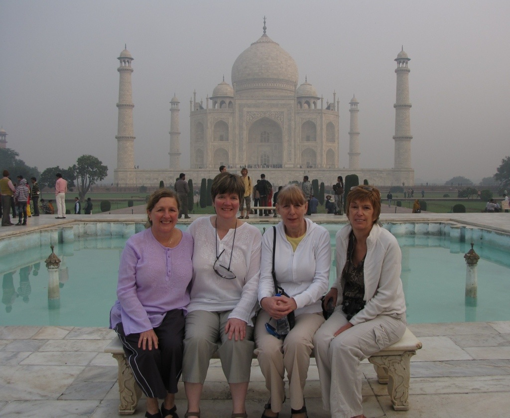 Ok we’re back. A little behind track now but nevertheless needed to capture our day at the Taj Mahal. We decided to do the early morning visit i.e. just after dawn at 7am and what a good decision that was. The good news was that Joyce was feeling a little better and not wanting to miss out on this highlight of the tour. It was decidedly cool and a little foggy and in fact the sun didn’t manage to burn away the cloud all day. It’s a shame we didn’t get to see all the different colours on the Taj as the day progresses but I thought it looked mysterious with the mists.