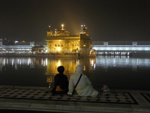 Randeep took us through the streets of Amritsar to the Golden Temple and by now it was dark and the streets a slightly calmer version of what we’d seen elsewhere. We had to be dropped off about a 10 min walk from the temple as the streets become too narrow here for a car or van to pass through. It was very busy with people coming and going but definitely all moving with a purpose.