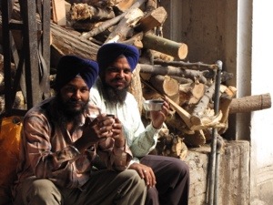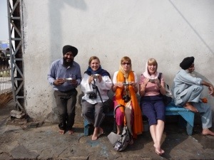 The next day we returned to the temple with our new guide Jaswinder who was a lovely Sikh lad of 26 who I think rather enjoyed having a very attentive group of English ladies to entertain for the day! He was another great guide and took us inside the Golden Temple itself. There is a huge queue along the length of bridge to get in but it moves fast and once in the temple its a heady mix of fragrance from incense and marigolds. The music is playing and being sung hypnotically and the book is on the cushion. Some people just come to look, like us, whilst others just find a place to sit and read their little prayer books. I was amazed that we got to go in here and I even got to touch the golden roof itself as we went right up to the top. The temple is in fact gold plate over a layer of copper over the base of the building which is white marble.