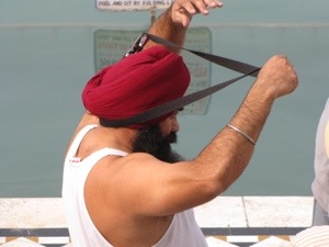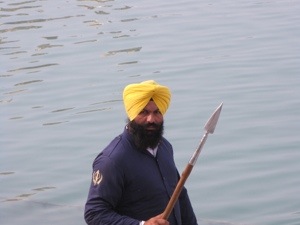 At the entrance to the Golden Temple we had to take our shoes off and wash our hands. We also needed to cover our heads with the scarves we’d brought with us. As you walk towards the temple gate you have to walk through a small channel of very clean water. You then enter via one of the 4 gates (N,S,E & W) which represent the fact that people from all over are welcome and people of the 4 main religions of India (Sikh, Hindu, Muslim and Christian).
