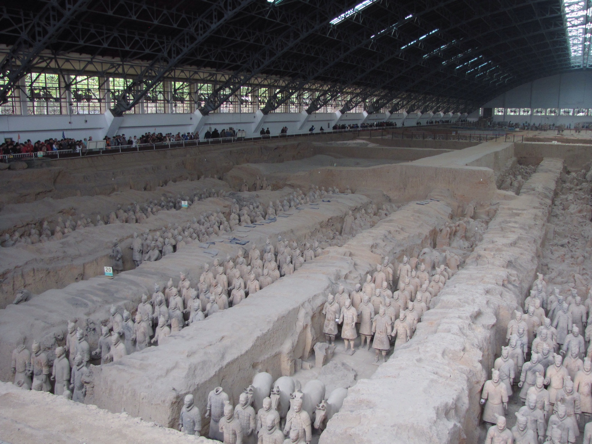We arrived near the archeological site where a whole town has developed around it. There are four hangar like structures to explore and Ellen led the way. As we entered the first and original hangar the huge expanse of the site became apparent. You immediately get the scale of the place and it was amazing to be stood seeing this ancient army of the Qin Dynasty back in 210BC. Ellen enthusiastically explained the history to us and I do know that it wasn’t until 1974 that the farmer discovered the site. In total there are 8000 warriors, 130 chariots and nearly 700 horses buried here.