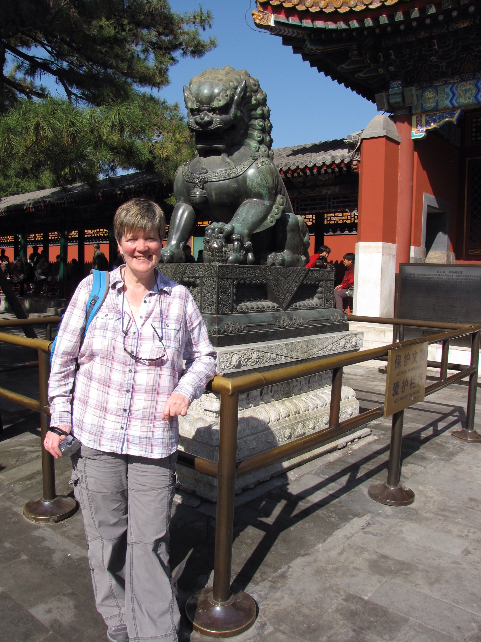 In we went and saw the temple and Yan told us some stuff about it. I’m afraid I couldn’t really hear her so all I can tell you is that the blue tiled roof is a reference to the God of Heaven but apparently it’s not religious which seems odd. It did look rather attractive though in the sunshine today and yes..the blue sky.