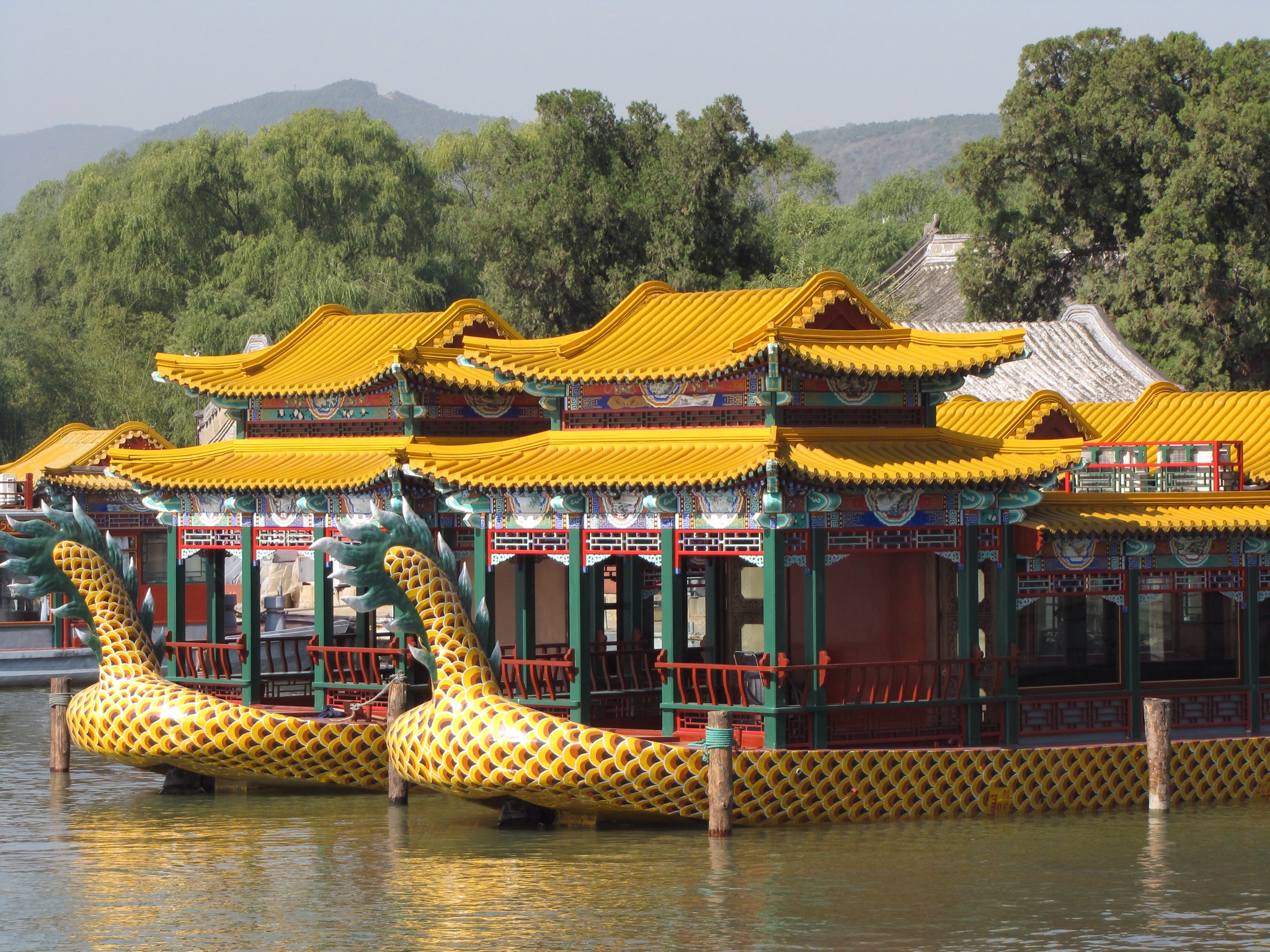In we went and walked around some old rooms and looked at some brass lions etc. The buildings are very splendid from the outside but nothing much to see inside. An impressive feature here is the long corridor which is in fact the longest painted corridor in the world (official Guinness book of records). It is open to the elements and runs alongside a large lake. It is 728m long and covered in 14,000 scenic paintings. I’m sure back in the days of the Emperor it was very tranquil but today it was packed with rowdy tourists. Still the views over the lake were pleasant enough.