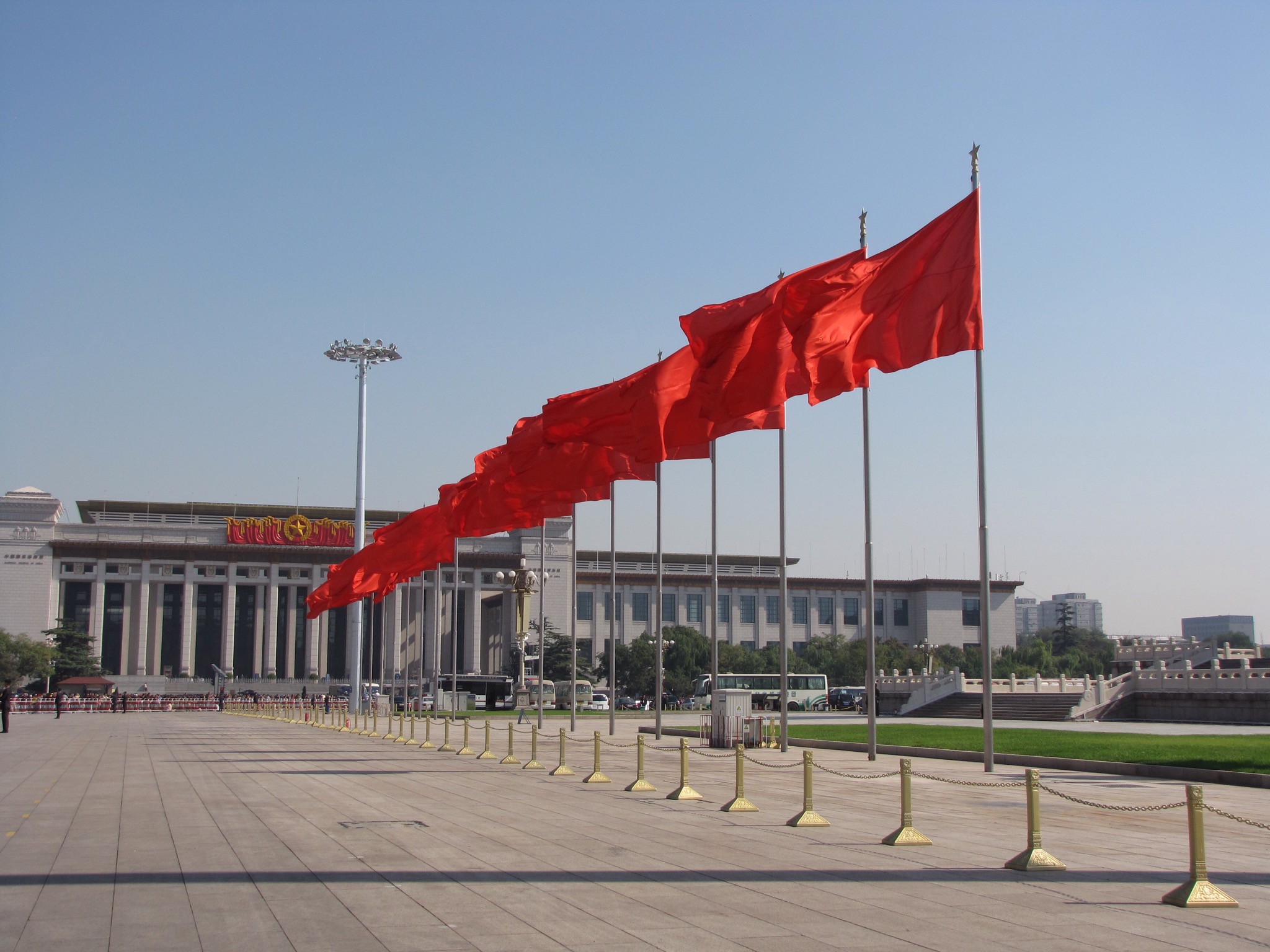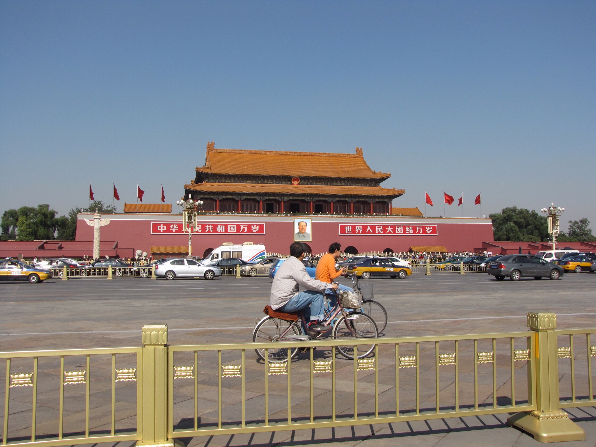 On we went under the big main road and towards the entrance which is next to the big picture of Chairman Mao. There was a lot of security around here including some very poor undercover detectives.