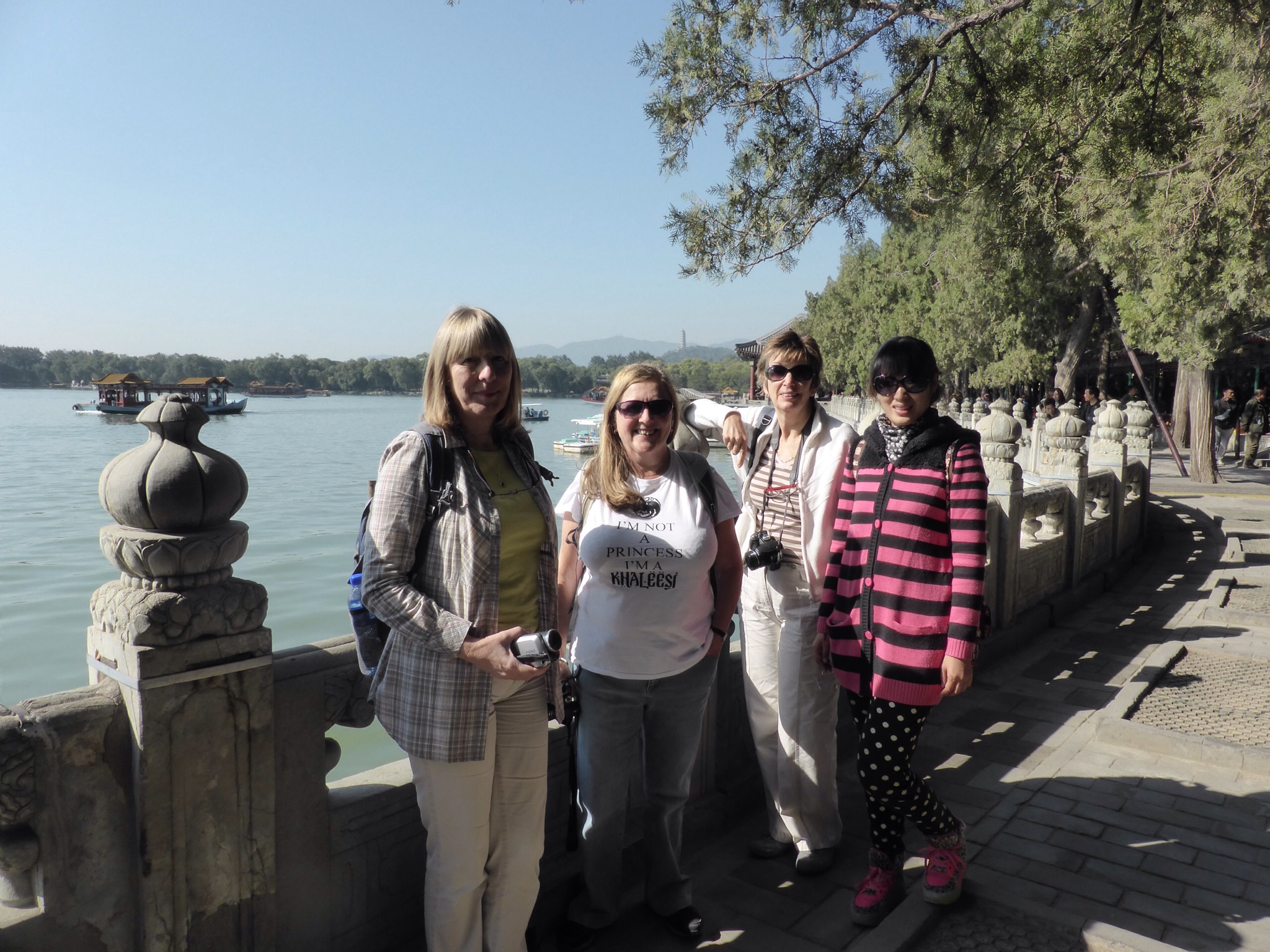 To finish our visit here we had a trip on a large Dragon Boat. This was at last a little more peaceful and we had good views back from the Kunming lake to some of the other buildings on Longevity Hill.
