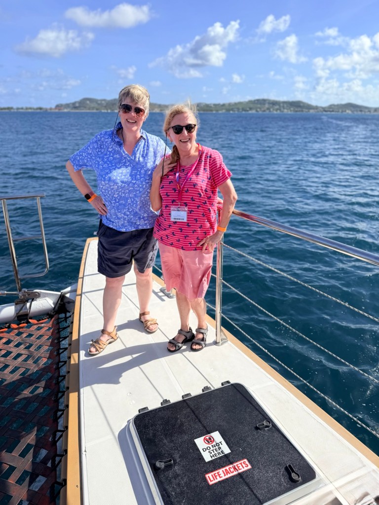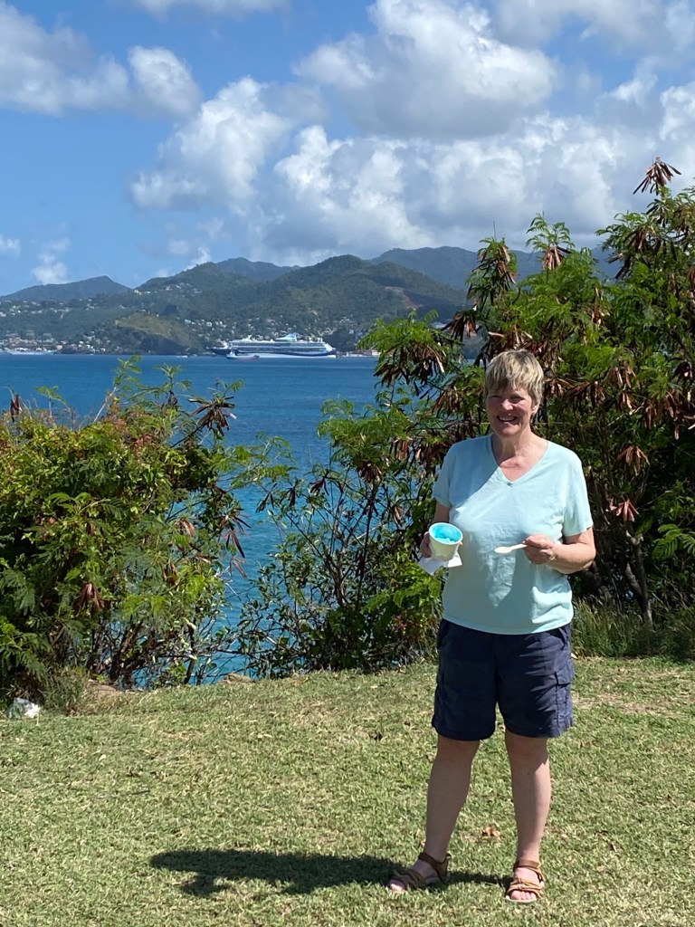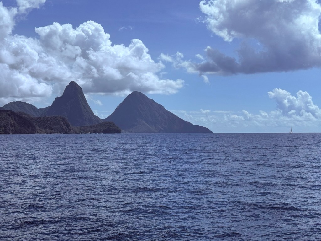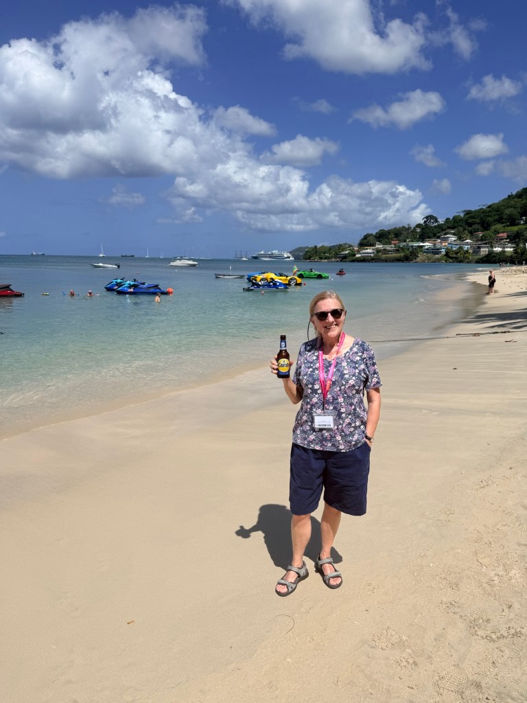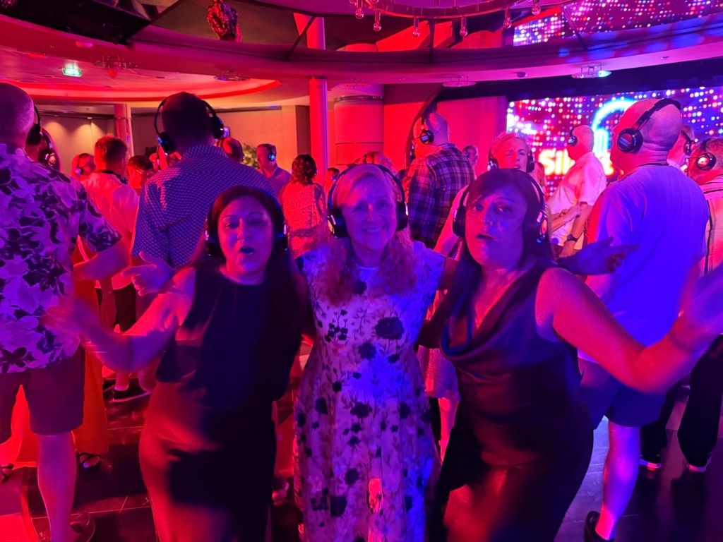 Well, before we get to St Lucia, we need to talk about the Silent Disco. This is a thing that’s been on my bucket list and finally we got to give it a go. So we were in the Squid and Anchor bar with about 50 other people and we all had our headsets on. This was a competitive Silent Disco with two channels to choose from Red or Blue. I think it was meant to be something like UK vs The Rest of the World. Who knows but it was far from silent as we all sang along to the epic tunes on our chosen channel with the two DJs encouraging each team to be louder than the other! We had a great time with Shami and Jo singing loudly and dancing the night away. It was hard to know whether the swaying was a result of the ship moving or something else but at least Jo said it wasn’t just me.
