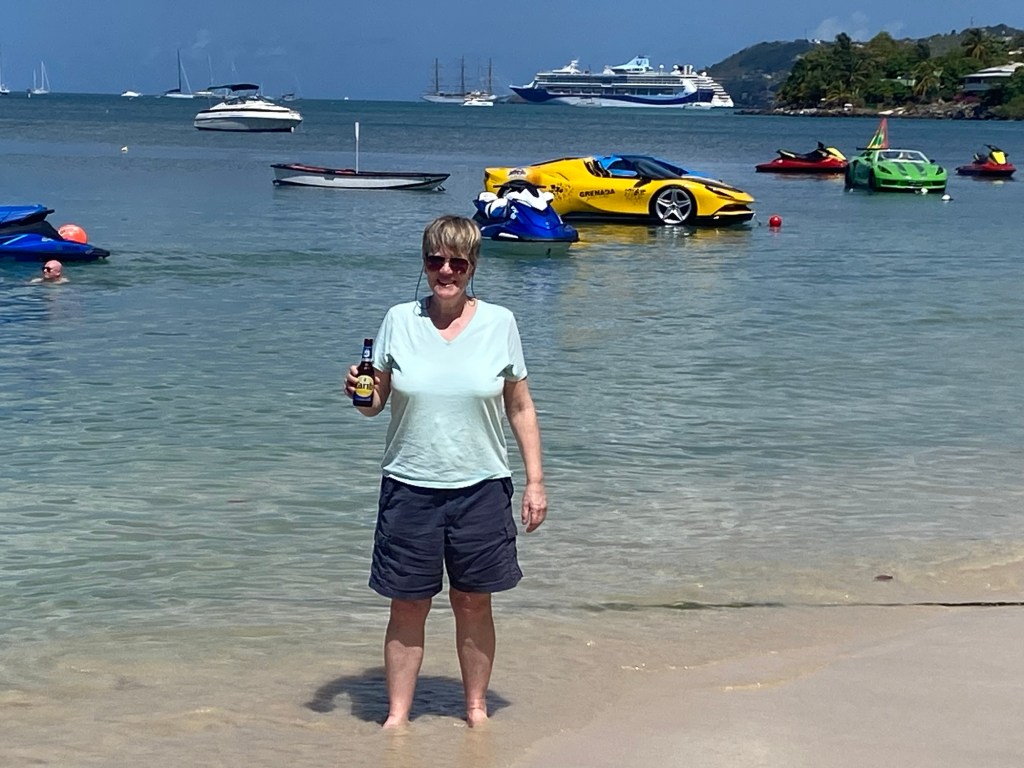 Who knows but eventually the crew got everyone organised and fed the starving masses. Jane and I meanwhile sat patiently and waited for the queue to shrink. Lunch was in fact very good and Jane particularly enjoyed her Bob Marley Fish!! Or was it Mahi Mahi that the lady said?!
