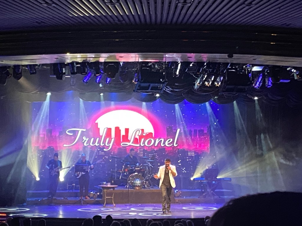 Just to finish off yesterday ..after our lovely trip out, we had dinner at 47 Degrees..the main waiter service restaurant. Then we met up with Shami and Jo for the 80’s music quiz where we scored a magnificent 21/21. I made a fine contribution with my obscure answers of T’pau and J Giles Band. Hurrah but unfortunately we lost out on the tie breaker question. We had planned to go to Karaoke later but somehow the girls persuaded us to go to see the ‘Truly Lionel’ show which featured a Lionel Ritchie tribute act. The place was absolutely packed by the time we got there and he was actually very good. We loved Mark’s video tribute to his Mum as he sang ‘Hello’. By the end Jane was Lionel’s number 1 fan up and dancing the night away. Another great night!