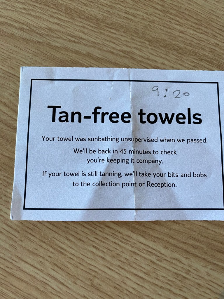 So we are relatively small but what’s it actually like? I must admit it is a little daunting especially today on the pool and sunbathing decks. By 7-30am, when we went to nab our sun beds with towels before breakfast, the place was already packed with sunbathing beauties toe to toe. Yes…you can nab your sunbed and I was quite proud that when we got back I had received a ‘Sunbed Parking ticket!
