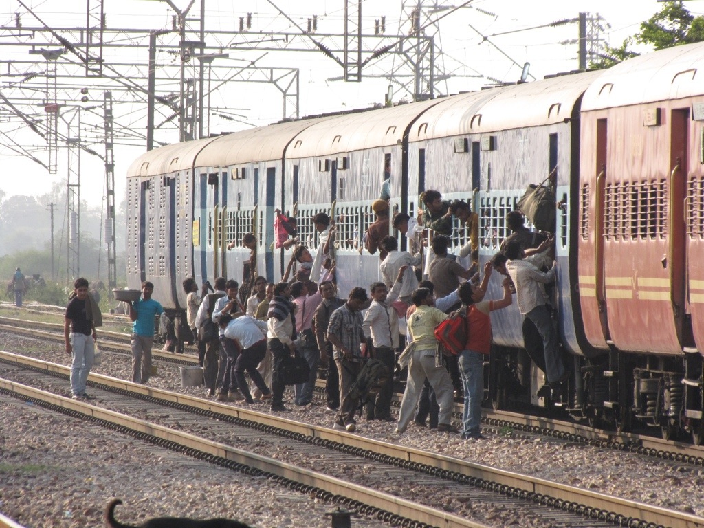 But first of all we have to get there. We walk through the station concourse which is covered with people lying down wrapped up like corpses. I wonder how long they’ve been waiting for their trains? As our guide checks our tickets at the ticket office we get surrounded by staring hungry eyes. We quickly move our bags to where we can all see them. We have porters with us who are carrying our suitcases 2 per head but its all starting to feel a little uneasy.